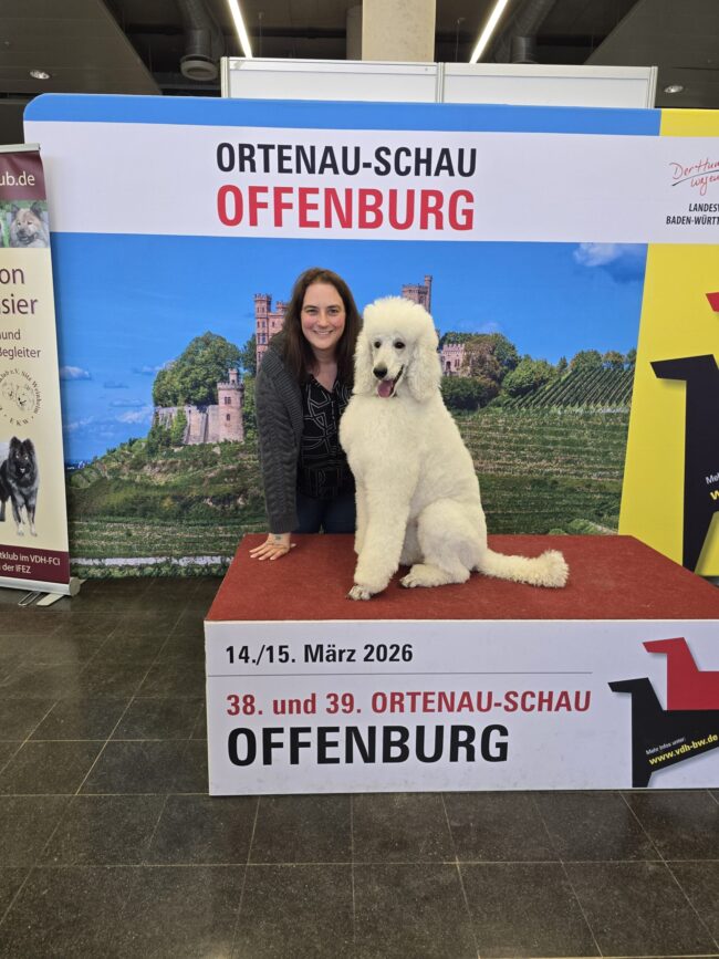 Heute war es endlich soweit, ich habe mich mit meiner Großpudel-Hündin nach Offenburg aufgemacht. Heute hat meine Fiby-Flöckhcen of magical tales ihre ZTP mit wirklich tollen Bewertungen mit Bravour bestanden! Das war der Startschuß für einen neuen Abschnitt in meiner Zucht, ich freue mich sehr darauf kleine Pudelchen groß zu ziehen und ihnen einen guten…